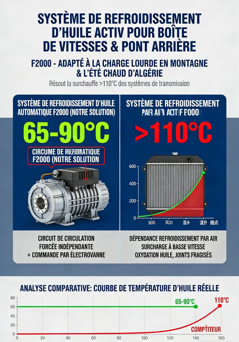 Le Qingdao Zhonghao F2000 n'est pas un camion d'exportation ordinaire, mais une solution technique sur mesure adaptée aux conditions d'exploitation extrêmes de l'Algérie. De la protection de l'admission d'air contre les particules de sable ≤10 microns au refroidissement de la transmission pour le contrôle de la température de l'huile, en passant par le renforcement du châssis pour la résistance à la torsion, chaque amélioration répond directement aux points faibles opérationnels.