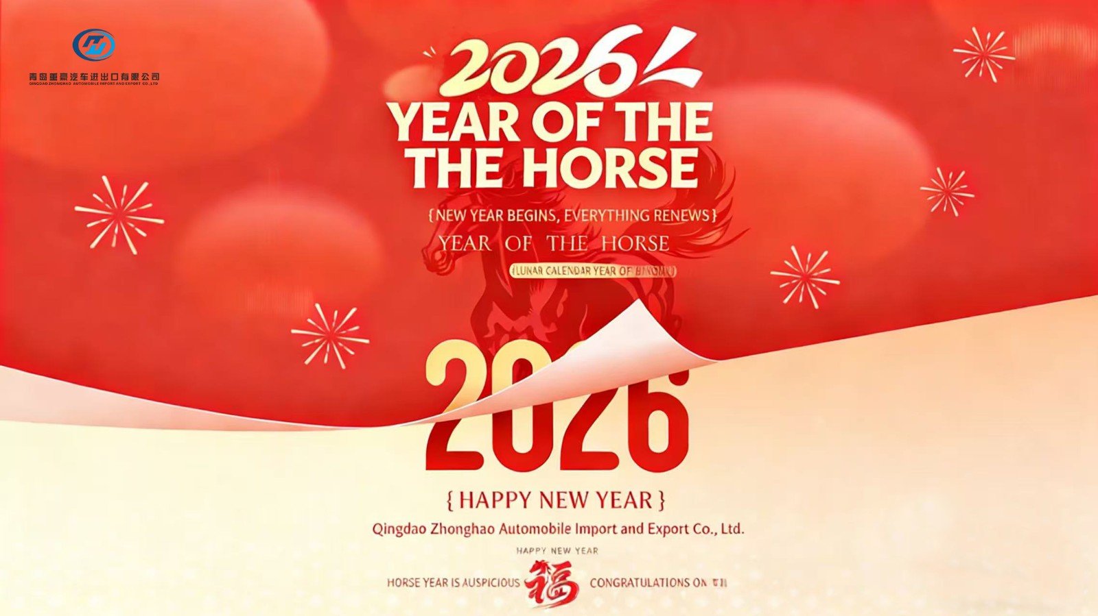 On this special Chinese New Year's Eve, all of us at Qingdao Zhonghao Auto Import & Export Co., Ltd. wish you a prosperous Year of the Horse!